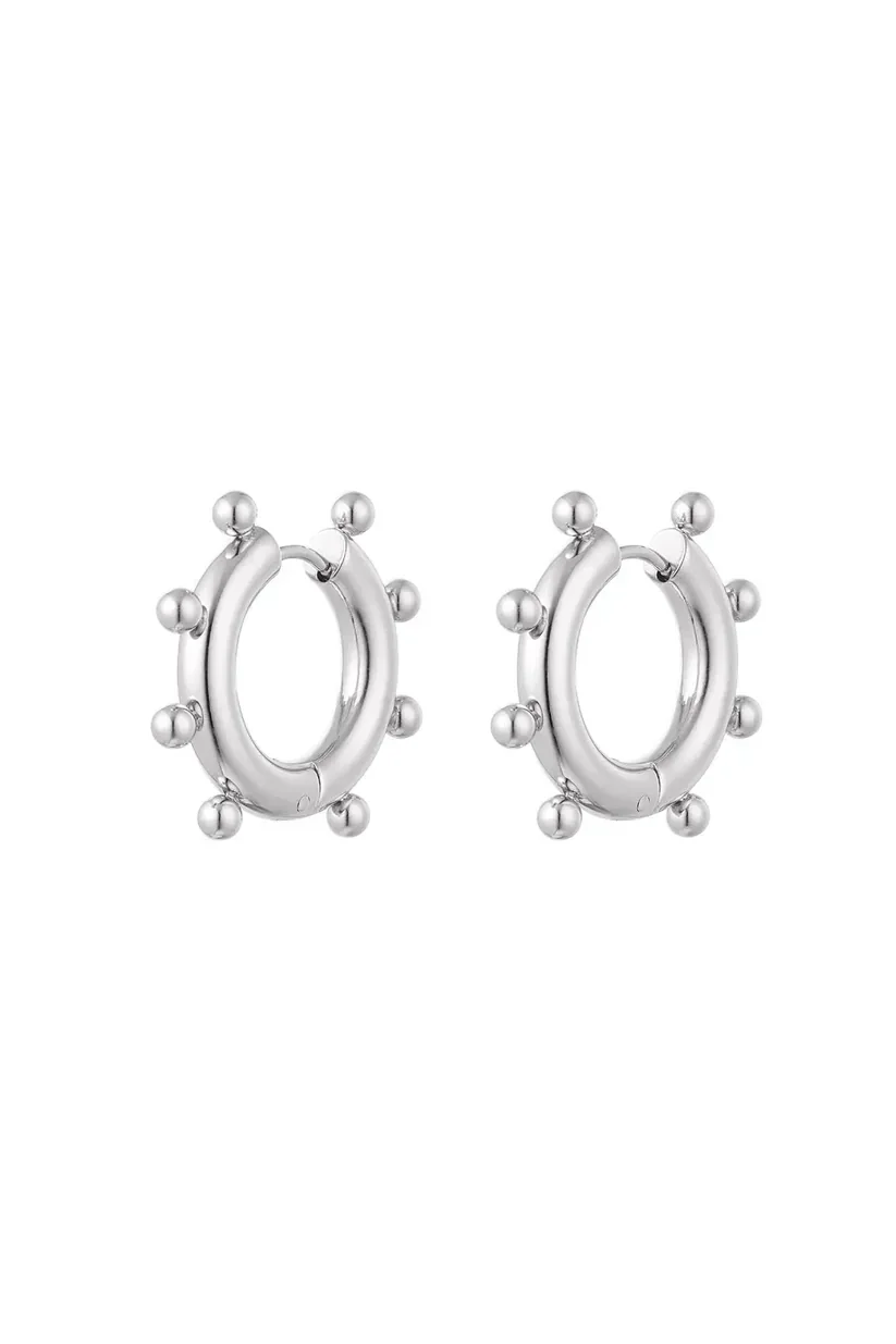 Wauw! Shop deze prachtige zilveren ronde oorbellen met bolletjes nu bij Instaboutique! De oorbellen hebben een super schattig uiterlijk dankzij de bolletjes en zijn perfect met meerdere sieraden te combineren. Leuk om deze oorbellen te combineren met een leuk jurkje of jeans. Ook leuk om deze oorbellen te combineren met een leuke haarband en jij bent klaar. De oorbellen zijn gemaakt van Stainless steel en hebben een afmeting van 2,4 x 2,4 cm. Je shopt deze leukerd in het zilver!